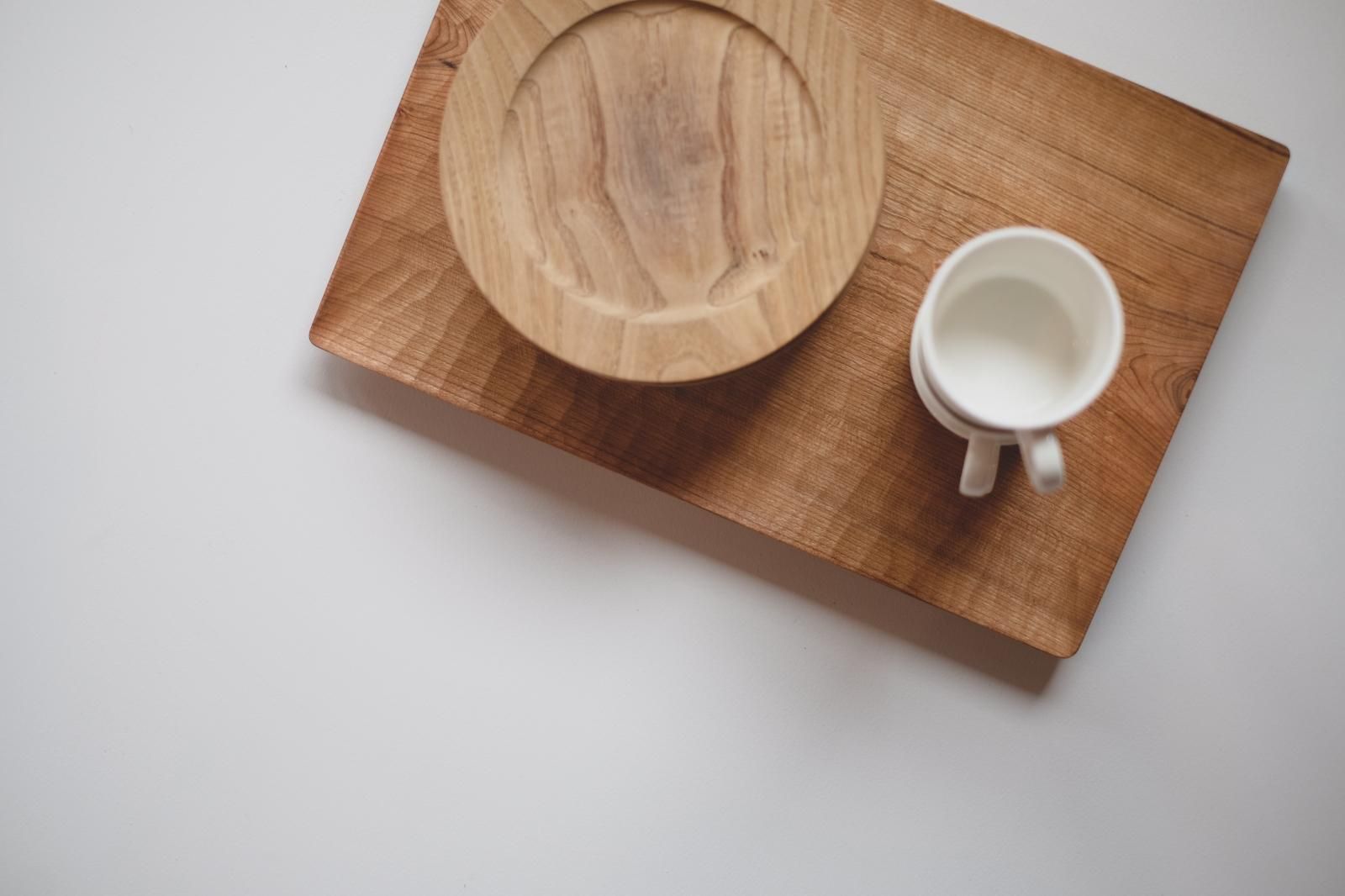 普通のトレーよりも少し細長いトレー。お食事に使うのはもちろんですが、来客時に人数分のお皿なんかを載せるのにもいいですね。