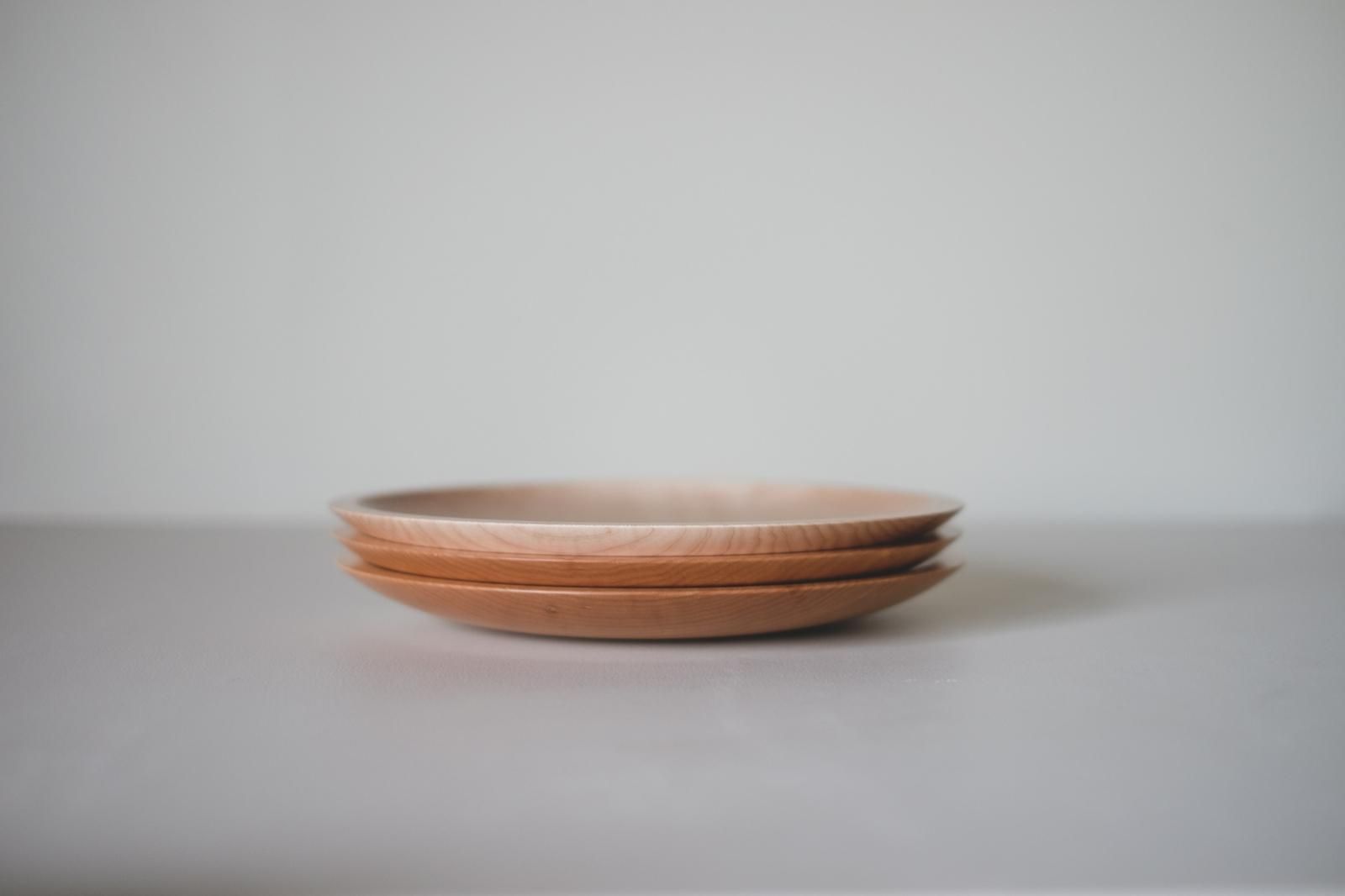数年前にたくさん作っていたものを家で使っていたら、とってもいい感じに育ってきたのでまたお作りしました。メープルは、最初こそ綺麗な白肌ですが、たくさん使ってあげると色が深く、濃く育ってきます。数年使ってある程度味が出てきたら、カレーにも挑戦してみてください。我が家のカレー皿はこのお皿です。厚みが4センチのものと比べたら軽い印象ですが、こちらの厚みでも木の温かさ、柔らかさを充分に感じることができます。