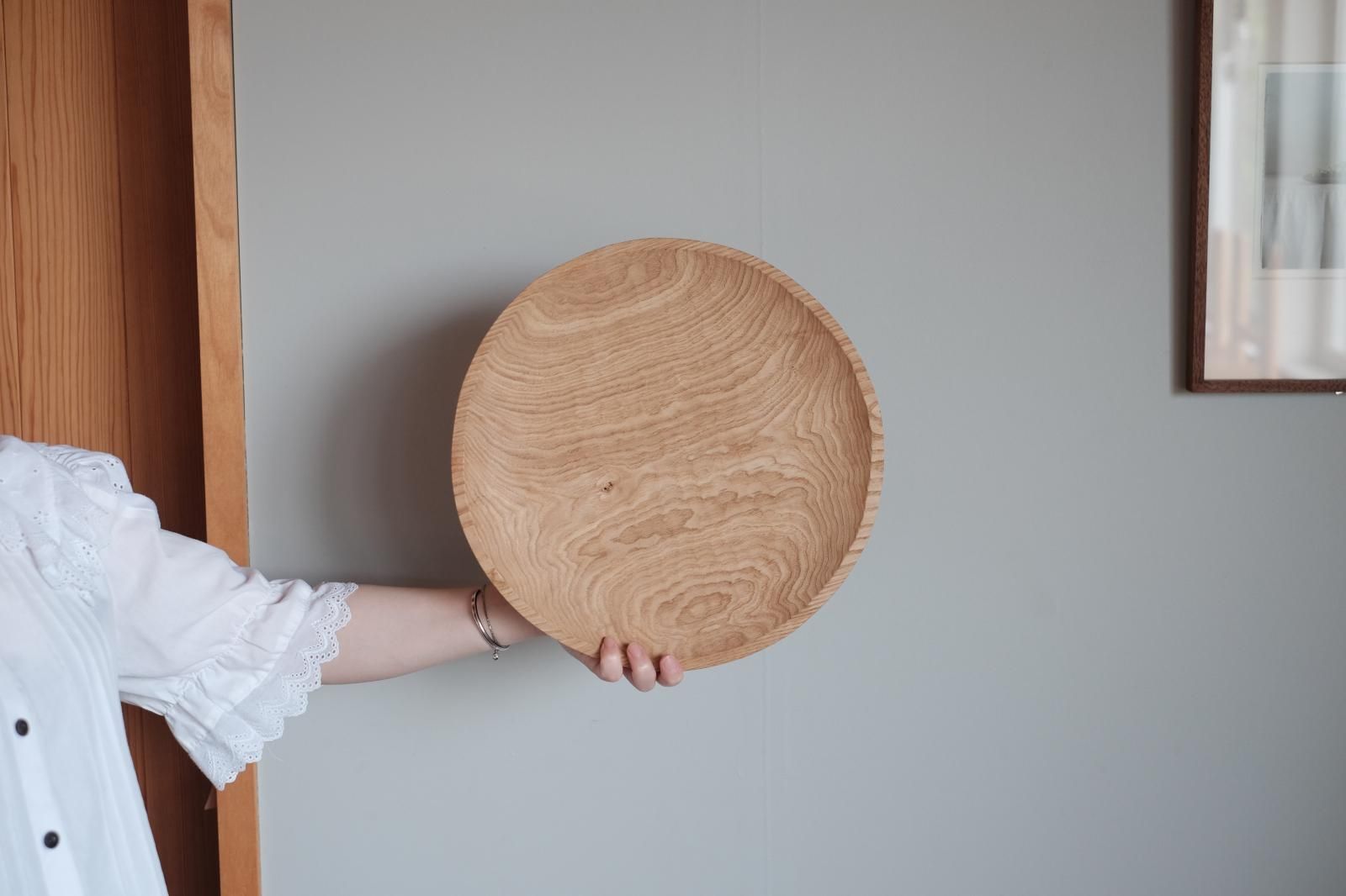 33センチ径の十分な大きさのこのお盆は、jingoroでも提供用のお盆として使用しているサイズ。