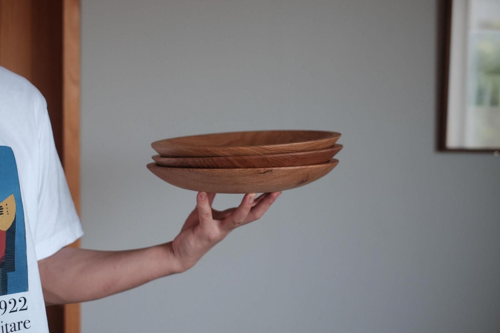 手彫りのノミ跡のおかげでテーブルの上に置いているだけで様になる、過度に主要しすぎないとてもちょうど良いお皿に仕上がりました。