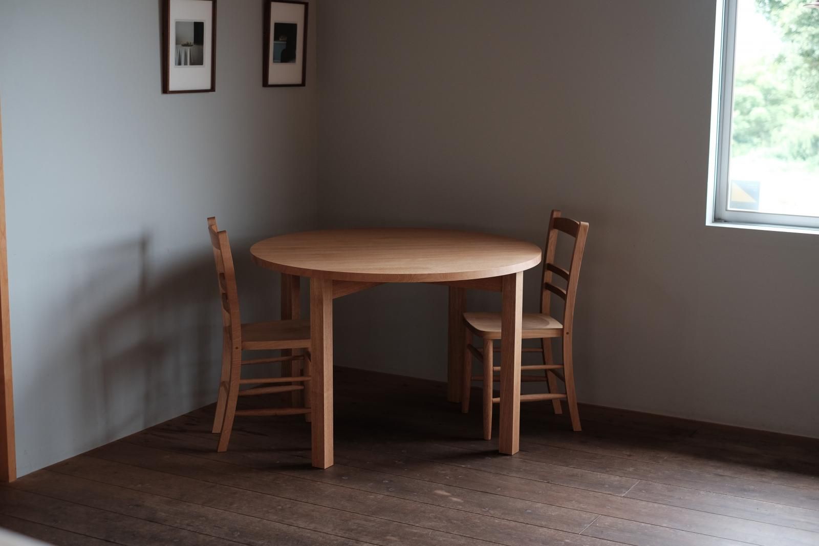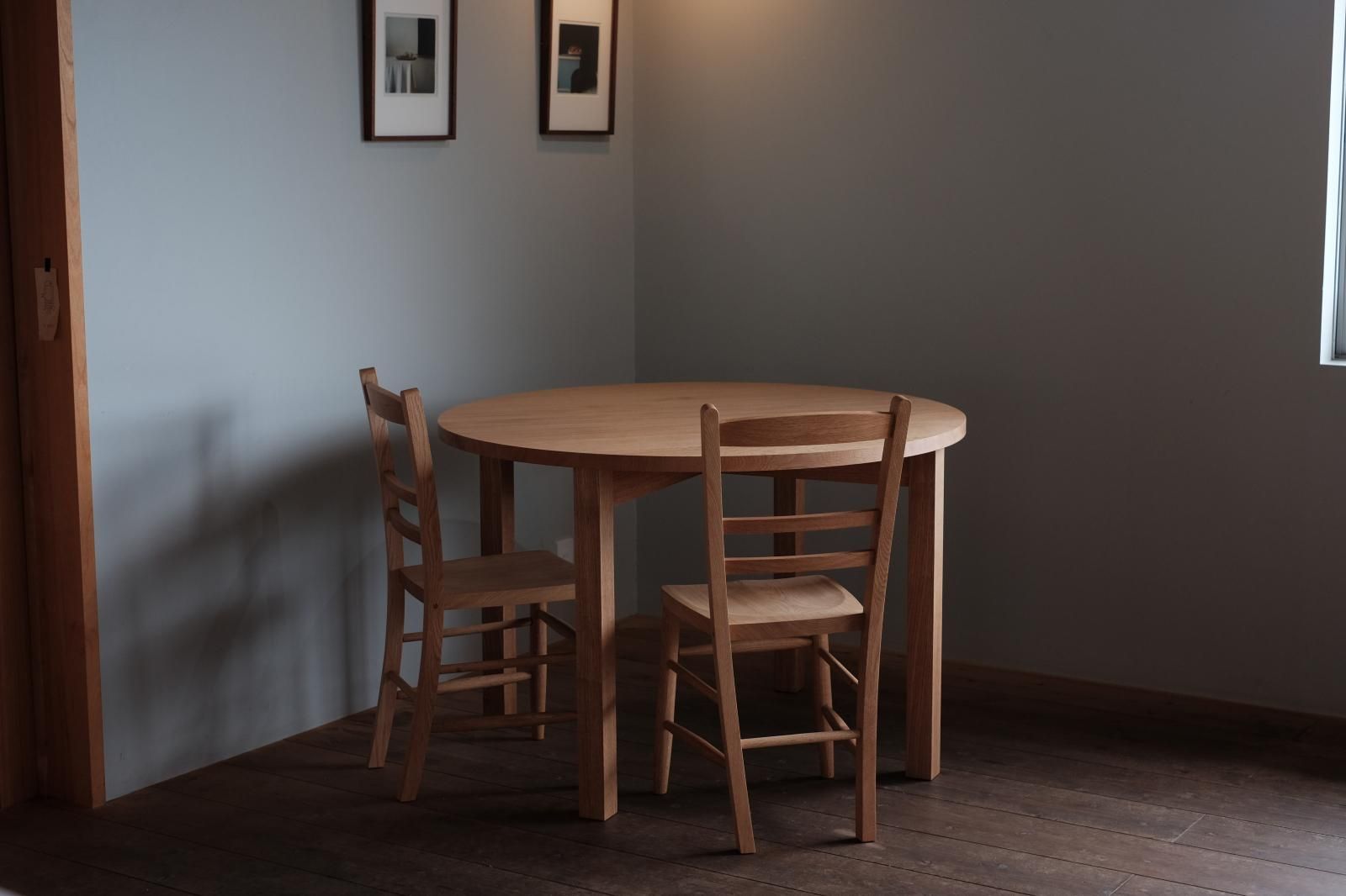 まるテーブルは、みんなの顔が見えるので幸せのテーブルです。直径1100mmなので、2~4名が使うのに適しています。